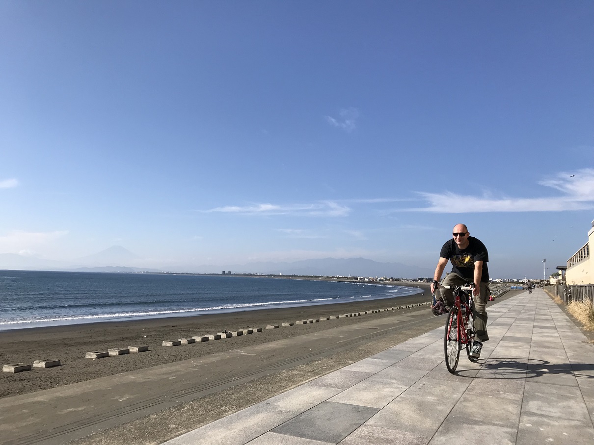Auf der Hauptinsel Honshu stellt sich die Lage etwas anders dar. Die Landschaft mit dem rauschenden Pazifik auf der einen Seite, das quasi immergrüne Land, die Berge und besonders der alles überragende Fuji bieten zwar in einigen Präfekturen die schönste Kulisse zum visuellen Genuss beim Radeln – wenn da nicht zwischendurch immer wieder Monstertrucks und S.U.V. auf engen Straßen an einem vorbeirauschten (so nahe, dass der Herzschlag stockt und das rechte Ohr vom Metall des riesigen Boliden brennt) oder ein Anstieg je steiler wird desto weniger Zeit man für diesen einplante. Honshus Geografie ist gekennzeichnet durch die seit Jahrmillionen andauernde Gewalt der Kontinentalplatten, die dieses bezaubernde Eiland zusammenpresst/auseinander reißt und verhältnismäßig wenig ebene Flächen oder gar endlose Weiten zum Ausradeln per Pedali bietet. Man sollte sich zum Entspannen als Freizeitradler also eine Strecke irgendwo im Strandbereich wählen, die nicht vom Winde des Pazifik und dem üblicherweise sehr feinen, vulkanisch dunklen Sand bedroht wird oder einen der wohl präparierten Radwege entlang der Flüsse für Fahrradtouren aussuchen. Japans Natur ist einfach atemberaubend und in manchen Gegenden sonnen sich ab Frühjahr Schlange oder Reptil auf dem heißen Asphalt (Vorsicht, bitte nicht überfahren 😉 ) oder der eine oder andere Bär lässt sich aus dem Dickicht blicken, wenn er sich zum sonnen auf eine Lichtung begibt, wie ich es in den sog. japanischen Alpen auf unserem Weg von Kanagawa über Yamanashi, Nagano, Toyama nach Ishikawa ans japanische Meer 日本海 erlebte (traditionelle Restaurants bieten hier auch Bären- und anderes Wildfleisch an).