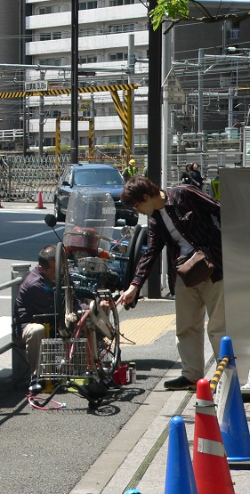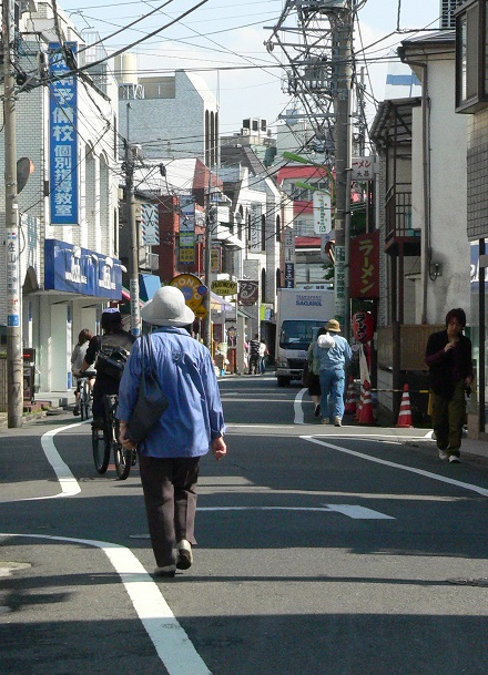 Die Straßen teilt man sich für gewöhnlich mit Autos und Motorcyclern und die japanischen Fahrer sind je nach Tagesform durchaus diszipliniert – vor allem beachten sie im Gegensatz zu anderen asiatischen Ländern Ampeln und eine gewisse Grundordnung (ich persönlich kenne zum Vergleich auch den relativ geordneten Verkehr von Süd-Korea, Singapur, Taiwan oder auch Israel, doch ebenso das Straßenchaos von Sri Lanka, Thailand, Vietnam, wo das Prinzip eines motorisierten Wettstreits zu gelten scheint, in welchem derjenige verliert, der bremst, aber ich habe noch Schlimmeres von Indien und Indonesien vernommen). Ein wachsendes Problem bilden auf Japan allerdings immer ältere Autofahrer, die zwar noch von ihrer Fahrtüchtigkeit überzeugt sind, aber diese Illusion irgendwann zum Preis von viel demoliertem Blech oder Schlimmerem aufgeben müssen, da sie letztlich doch zu gefährlich für andere Verkehrsteilnehmer agieren. Es gibt inzwischen auch immer mehr breite Spuren neben der Fahrbahn abgetrennt, da Zweiräder sichtlich immer häufiger genutzt werden und zu jedem Haushalt eigentlich auch Fahrräder gehören. Hohe Luftfeuchtigkeit und die Regenzeit fordern allerdings ihren Tribut und so überfällt schon nach kurzer Zeit der Rost die nicht ganz so teuren Gebrauchsräder, die außerhalb des Hauses geparkt sind. Die hervorragender Technik aufgeschlossenen Japaner nutzen aber auch sehr hochwertige Touren- und Rennräder, die sie dementsprechend gut behandeln, pflegen und lagern. Entlang der Ortschaften und wichtiger Strecken wie Route No.1 werden gut ausgestattete Fahrradgeschäfte und -werkstätten unterhalten, in denen sowohl gutbetuchten Kunden, als auch reparaturbedürftigen Radlern hervorragend geholfen werden kann. Entgegen den gesetzlichen Bestimmungen haben die Leute in den Ortschaften meist nichts dagegen, wenn die Radfahrer sich den Bürgersteig mit ihnen teilen – anders waren meine Erfahrungen in Berlin, wo ich selbst als geruhsamer Radler manchmal dem aggressivsten Zorn frustrierter Fußgänger ausgesetzt war (von manchem Autofahrer auf der Straße nicht zu reden). Für den Geschäftsbereich in den Großstädten etabliert sich auch in Japan mancher Zustelldienst per Fahrrad (https://t1p.de/k3gq ).