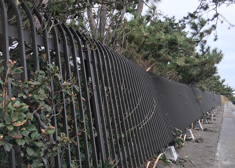 Die Highways an der Küste und Fluttore werden alle geschlossen, Flughäfen, Shinkansen und andere Züge sind außer Betrieb, riesige Wassermengen vom Himmel und vom Meer hereingedrückt fluten häufig niedrig gelegenes Land. An Schlaf ist kaum zu denken (naja, nach gutem Sake kommt letztlich auch guter Schlummer 😉 ) Und am nächsten Morgen – eine arg zerspülte, durchwehte und zerrupfte Küstengegend mit vielen kleinen Trümmern; wunderschöne Sonne, eine klarer, schöner Himmel, starker Wind und mächtige Wellen, einfach erstaunlich …