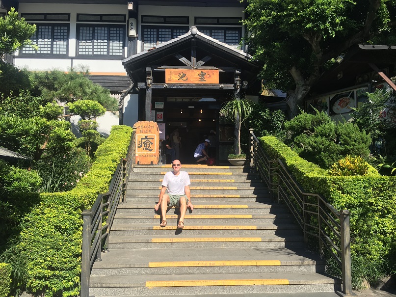Etwas außerhalb der Stadt Taipeh besuchen wir ein Onsen (Kochi-Onsen in Beitou 北投溫泉), das von schwefligen Quellen gespeist wird und sich somit doch schon in seiner Wasserqualität von traditionellen japanischen Onsen unterscheidet. Die Luftqualität ist ziemlich gut und die Landschaft bezaubernd; das Land ist eigentlich ein Fahrradparadies, da es sicher ist, sie schöne, lange Strecken um ihre Insel ausbauten und man auch in einigen Zügen ihres gut ausgebauten Netzes wie in Japan die verpackten Räder mitnehmen kann – allerdings stellen verwilderte Hunde in mancher Gegend ein ernsthaftes Problem dar. Essen und Getränke sind nicht so toll, natürlich chinesisch geprägt und teils sehr aufdringlich gewürzt – sie mögen hier übrigens verschiedenster Form lecker zubereitete Frösche und verschiedenste Ei-Variationen. ‚Taiwan-Beer‘ 台灣啤酒 ist angenehm frisch und so wie in anderen asiatischen Ländern spielt das sog. Reinheitsgebot keine Rolle – ohne Einschränkung gut, die Leute sehr freundlich und angenehm unaufdringlich. Diese Insel bietet mit seiner chinesischen Bevölkerung neben den Chinesen Singapurs und Hongkongs ein schönes Muster, was aus China selbst vielleicht einmal werden könnte, sobald die Leute abseits einer führenden kommunistischen Partei mehr Freiheiten erlangen werden.