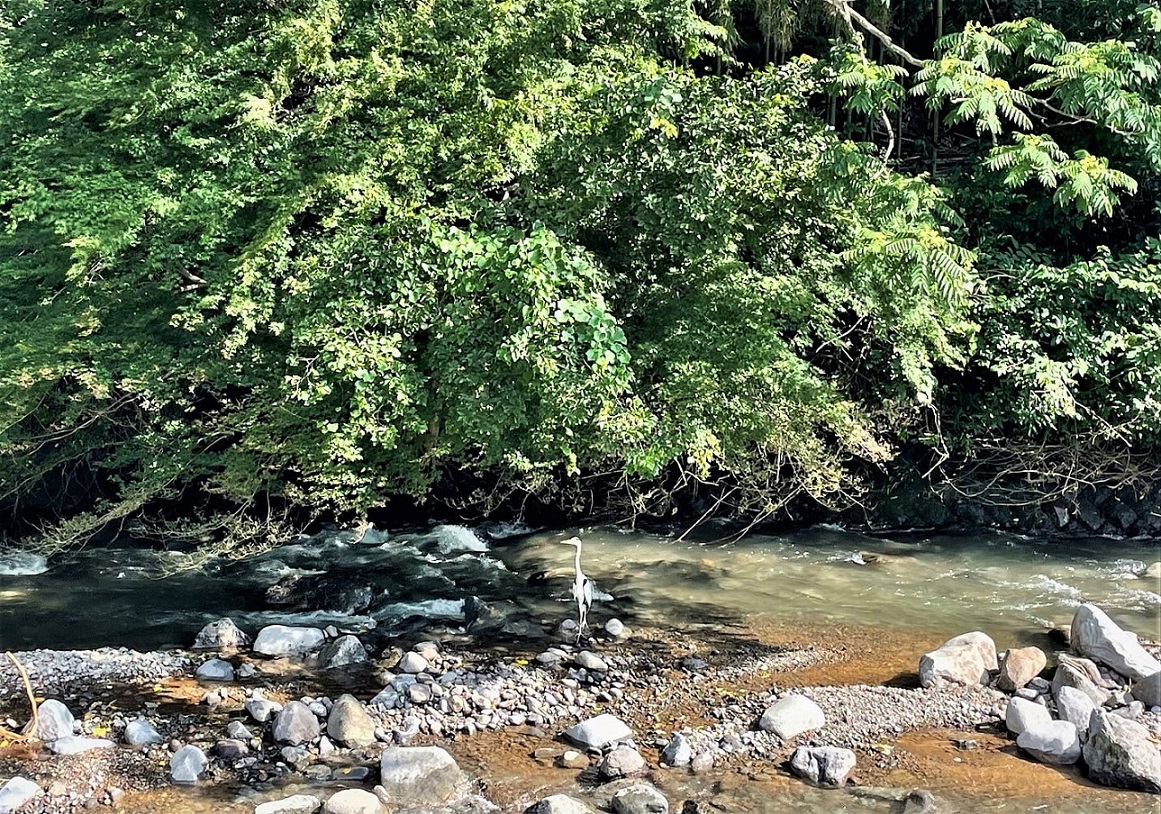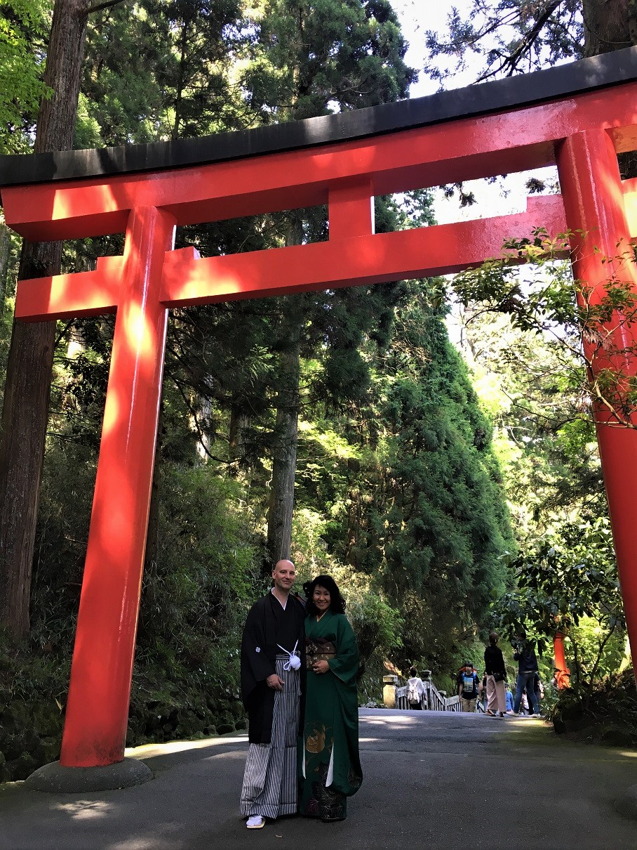 Yugawara liegt am unteren Ende jener prächtigen Bucht am Pazifik, mit schönen Sommern, milden Wintern, umwerfender Natur, fruchtbaren Reis-, Wein-, Obst- und Grünteepflanzungen, einem atemberaubenden Blick von vielen Stellen auf den einzigartigen Fuji und Strandabschnitten, die bei Surfern und Anglern so beliebt sind wie Fahrradtouren entlang der Gewässer. Der Platz unseres Wohnhauses gehört verwaltungstechnisch schon zum Badeort Atami, ist allerdings geographisch davon getrennt durch Higane, Iwato und Izu Berge. Es scheint auch eine spirituell berührende Gegend zu sein, kleinere Tempel und Schreine finden sich fast überall entlang hiesiger Wege in den umliegenden Hügeln. Am Chitose Fluss, der neben dem Yoshihama-Strand ins Meer mündet, beginnt nicht weit von einem Wasserfall ein uralter Wanderpfad, der entlang unseres Hauses über Wald und Bächlein bis hinauf zur Higane-Bergkuppe führt, wo sich ein Tempel befindet – es gibt alte Erzählungen darüber, wie ein einfacher Mann, der hier einst lebte und seine Angetraute früh verlor, auf diesem Pfade, den er regelmäßig ging, eine neue liebe Frau traf, die auch ihren Angetrauten früh verloren hatte und wundersamer Weise seiner verblichenen Ehefrau sehr ähnlich sah, fast wie aus dem Gesicht geschnitten – Japaner mögen eine Mischung aus Romantik und Mysterium.