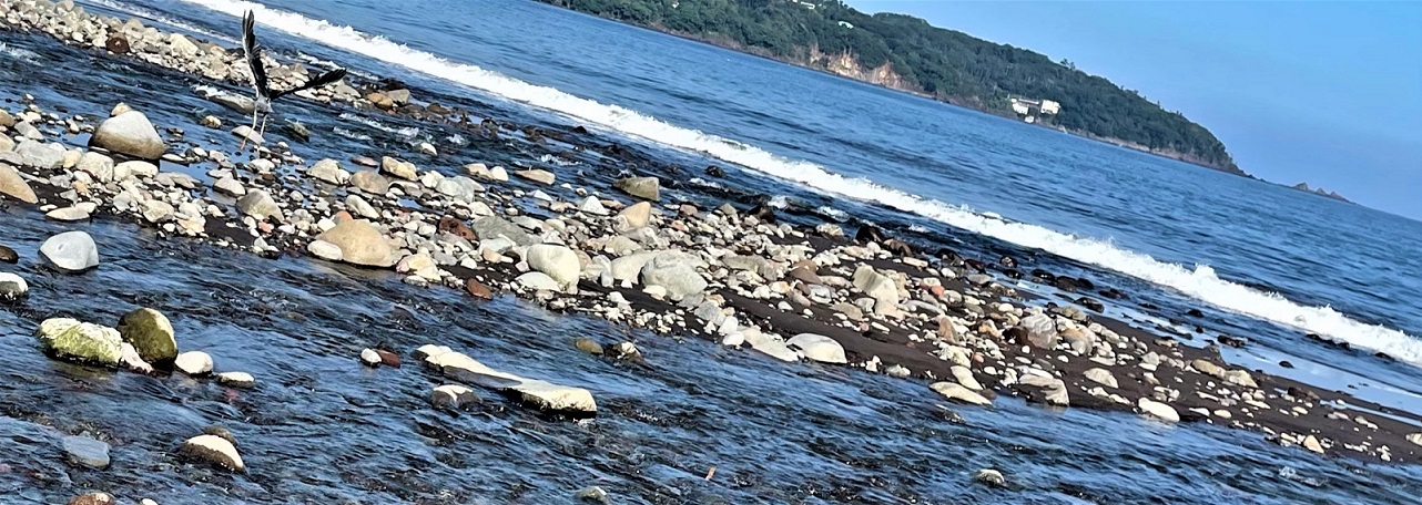 … Sagami Bay ist insgesamt schon von Liebreiz geprägt und unser neuer japanischer Wohn- und Lebensort hier am südlichen Rande der Sagamibucht zwischen zwei Präfekturen und den Gemeinden Yugawara und Atami erstrahlt noch einmal in auffälliger Anmut (unsere Adresse gehört zur Stadt Atami/Präfektur Shizuoka, doch wir leben hinter dem Rücken der Izuberge lokal quasi in der Gemeinde Yugawara/Präfektur Kanagawa nahe des Chitose Flusses, der die Grenze zwischen diesen Präfekturen hier bildet). Die Faszination Japans erscheint besonders attraktiv in den umliegenden Präfekturen Kanagawa und Shizuoka – raue Pazifikküste mit schroffem Fels und Stränden, dicht bewaldete Bergketten, in denen niedrig hängender Wolkendampf wie Atem von Göttern schwebt und natürlich der alles überragende Vater Japans Fujisan mit seinen umliegenden Seen, nicht minder göttlich anmutend. Faszinierendes Sonnenlicht und traumhafte Farben in jedem Frühjahr und Herbst, subtropische Natur, viele Quellen, Bäche und Onsen, üppige Flora wie Fauna und Reichtum an edlen Meeresbewohnern charakterisieren diese Ländereien. Die berühmtesten Zeichner Japans, besonders Hokusai und Hiroshige, hielten hier schöne Landschaftsansichten sowie einige Stationen des Tōkaidō fest, der seit alten Zeiten wichtigen Verbindungsstrecke zwischen Edo und Kyoto, die noch heute als National Route 1 an der Küste unweit Yugawaras entlang führt und die großen Metropolen Tokyo und Osaka miteinander verknüpft.