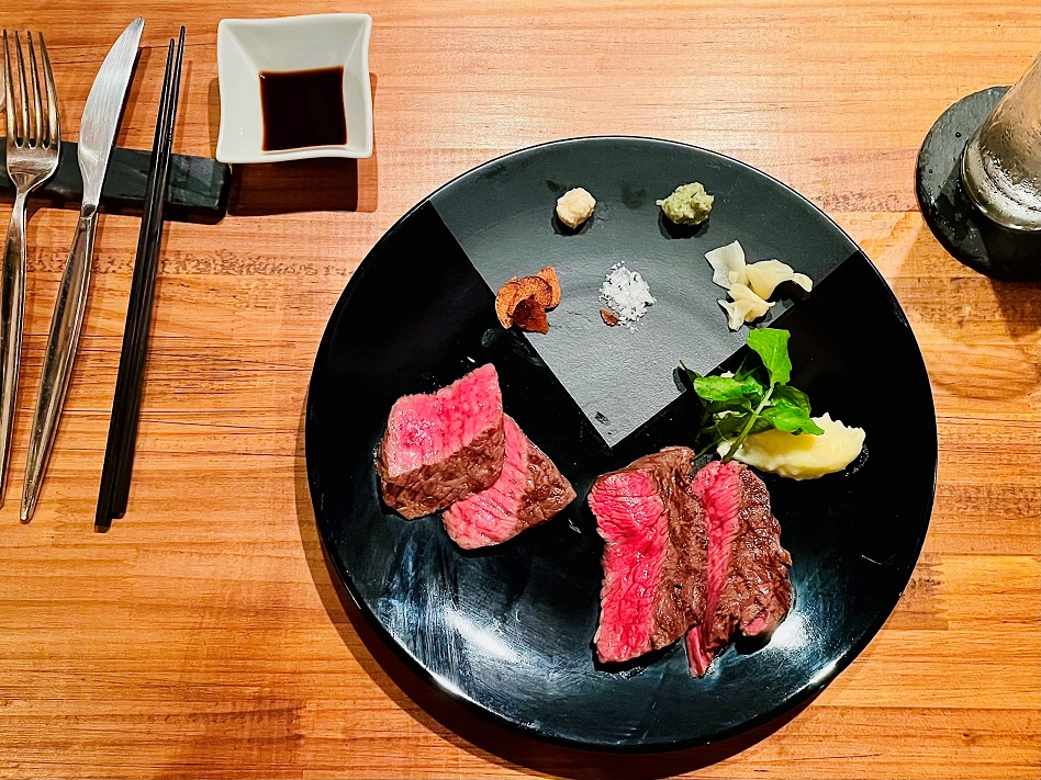 Meine erste Wagyu-Erfahrung hier in Japan hat mich kulinarisch so sehr verzückt, wie davor nur die Kostproben des begehrten Hon-Maguro (ein bei Sashimi-Feinschmeckern besonders beliebter, edler Thun) oben auf Hokkaido (https://t1p.de/khi8). Geschmack und Nahrhaftigkeit dieser überragenden Rinder sind in Gegenüberstellung zur herkömmlichen Fleischqualität in DE so, als vergleiche man jenen Hon-Maguro mit Fischstäbchen. Aussehen/Marmorierung, Zartheit, Geschmack und Energie des Fleisches bezeichne ich nach meinem Urteil nicht allein als schön&kostbar, sondern ich denke, dass diese auf unerreichbar hoher Ebene angesiedelt sind, wo nicht einmal die Kulinarik saftiger Steaks heranreichen kann, deren gute Qualität und Geschmack ich von meinen Reisen in Uruguay erinnere. Tatsächlich fühle ich mich von nur wenigen Kostproben dieses Wagyu weitaus erquickter und gesättigter als von vielfacher Menge herkömmlichen Supermarktfleisches – es zeigt sich also am Beispiel so hochwertiger Nahrung, dass eine hohe Qualität neben diesem unvergleichlichen Genuss auch einen großen Nährwert hervorbringt und eine ‚Geiz-ist-geil‘-Mentalität weder für den Geschmack noch die Physiologie gut sein mag (ich erinnere an die schon früher getroffene Feststellung, dass Fettleibigkeit und auf mangelhafte Ernährung zurückgehende Leiden weniger in Japan, doch immer mehr in DE thematisch wurden).