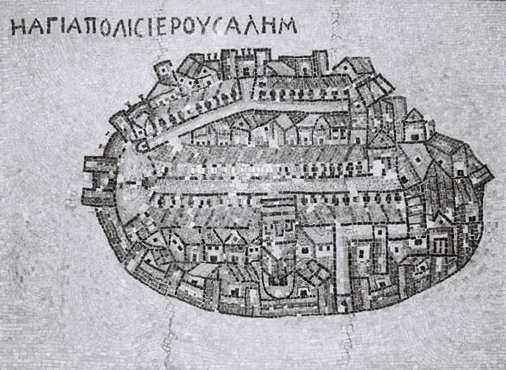 Die Geschichte Jerusalems bekam im Ersten Jahrhundert ohnehin eine neue Tradition aus christlicher Perspektive. Die Stadt war zu einem Schatten-Dasein verurteilt, bis sie von Kaiser Hadrian im 2. Jahrhundert völlig neu als pagane Stadt, als römische Kolonie konzipiert wurde – inklusive Forum, Theater, Thermen, Triumphbögen, von denen der als „Ecce Homo“ bekannte von der christlichen Tradition adoptiert wurde, Tempel für römische Gottheiten und Statuen für den Kaiser. Auf dem Tempelberg wurden ein Tempel für Jupiter Capitolinus und ein Venustempel errichtet und über dem Platz, den die Christen als Grab Christi reklamierten, wurde ein Aphroditetempel erbaut. Von einem Platz am heutigen Damaskus-Tor ausgehend, unterteilte der Cardo Maximus, von dem ein relativ großes Teilstück im jüdischen Viertel zu besichtigen ist, die Stadt westlich des ehemaligen Tempelareals in Nord-Süd Richtung. Auf dem Platz innen vor dem Tor wurde auch eine Säule errichtet, an die der arabische Name des Tores (Bab al ’Amud) erinnert. In der ältesten schematischen Darstellung Jerusalems in einer Kirche in Transjordanien, dem „Madaba-Mosaik“ aus dem 6. Jahrhundert, sieht man deutlich den Platz mit der Säule und die Nord-Süd Achse des Cardo Maximus. Steht man heute an diesem Damascus-Gate (tatsächlich gingen von dort aus im Mittelalter Karawanen nach Damaskus) und schaut hinunter auf eine ca. 5 Meter tiefer gelegene Ebene, kann man ein Tor aus dieser Zeit sehen und erkennt gleichzeitig, auf welcher Höhe der Eingang in die Stadt damals lag. Diese nach dem Familiennamen des Kaisers und dem obersten Gott des römischen Pantheon Jupiter Capitolinus, benannte Stadt „Aelia Capitolina“, wurde nun römischer Kultur stärker angepasst. Aufgrund eines Aufstandes gegen Rom (Bar Kochba-Aufstand) wurde den „Beschnittenen“ (Juden und Juden-Christen) wieder das Betreten der Stadt komplett verboten. Auch der Name der Juden sollte verschwinden und so hieß die vormalige Provinz Judäa nun nach den indoeuropäischen Philistern – die im Zuge der sog. Seevölkerstürme seit dem Ende der Bronzezeit/Frühen Eisenzeit an der levantinischen Küste siedelten – Palästina (erweitert Syria Palästina); Jerusalem fristete bald das Dasein einer Provinzstadt, die römische Kapitale dieser Provinz war das weiter nördlich an der Küste gelegene Caesaraea.