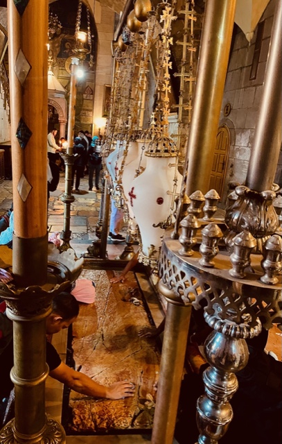 Die christliche Wallfahrt nach Jerusalem hat eine lange Tradition, die bis in die Antike zurückreichte, und besitzt bis heute eine enorme Bedeutung für die Gläubigen – aus dem Jahre 1065 wurde zum Beispiel über einen Treck von 12000 Pilgern aus Holland und Süddeutschland kommend berichtet. 1096 begann unter Papst Urban II. die erste der so genannten bewaffneten Wallfahrten – das Zeitalter der Kreuzzüge brach an. Am Anfang stand interessanterweise ein militärisches Hilfeersuchen des Byzantinischen Kaisers Alexios I. an den Papst gegen die Seldschuken in Anatolien. Zu dieser Zeit war die Morgenländische Orthodoxe Kirche schon über 40 Jahre von der Römisch Katholischen Kirche in Rom abgetrennt und das katholische Heer wurde im Osten kaum mit offenen Armen empfangen. Die Streitmacht unter der Führung verschiedener fränkischer Fürsten (Gottfried v. Bouillon, Raimund v. Toulouse, Stephan v. Blois) eroberte 1099 Jerusalem, das erst ein Jahr zuvor von den Ägyptischen Ayyubiden besetzt worden war, und richtete ein unvergleichliches Massaker unter der muslimischen und jüdischen Bevölkerung an. Gottfried v. Bouillon wurde zum Hüter des Heiligen Grabes (Advocatus Sancti Sepulchri) bestellt und ein Jahr später wurde Balduin I. König von Jerusalem. Die Stadt war anfangs ziemlich leer, Juden und Muslime hatten lange Zeit kein Wohnrecht, christliche Familien wurden aus dem Osten angelockt, sich unter sehr günstigen steuerlichen Bedingungen anzusiedeln und mehr und mehr Pilger blieben in Jerusalem. Die Stadt behielt das herodianische Muster, erhielt aber außerdem eine Ost – West Verbindung (Decumanus), wie bei den Küstenstädten Akko, Caesaraea und Ashkalon, bei denen das Westtor zum Hafen hinausführte. Das Gebiet um die Grabeskirche von „Porta David“ (Jaffa Tor) bis „Porta Sankt Stephani“ (Damaskus-Tor) wurde zum Patriarchenviertel, der Nordwesten bis zum „Porta Josaphat“ (Löwentor) zum Syrischen Viertel, der Südwesten zwischen „Porta Monte Sion“ (Zion-Tor) bis zur Zitadelle zum armenischen Viertel, wo es sich im Prinzip noch heute befindet. Zitadelle und Davidsturm wurden zum Königssitz, bis Balduin in die Al Aqsa umzog, und den Tempelberg hütete der neu gegründete „Templerorden“. Weitere Orden (Johanniter, Teutonen, St. Lazarus, Hospitaliter) wurden zur Betreuung und zum Schutz der Pilger gegründet, die aus ganz Europa und der Levante einwanderten und der Stadt einen kosmopolitanischen Charakter verliehen. An den Ruinen des St. Maria-Hospitals des Deutschen Ordens kommt man vorbei, wenn man von der Klagemauer zum jüdischen Viertel hochsteigt. Der Templerorden wurde später in einer Kampagne mit Hilfe der Inquisition vernichtet, der „Johanniterorden“ erhielten im 16. Jahrhundert Malta (daher später Malteser Orden) und dem „Deutschen Orden“ wurden von Friedrich II. das Land der preußischen Heiden übereignet. Der Felsendom, der jetzt „Templum Domini“ hieß, erhielt ein großes goldenes Kreuz und viele muslimische Heiligtümer wurden in Kirchen und Klöster umgewandelt. Die Grabeskirche durchlief eine 50jährige Rekonstruktions- und Vergrößerungsphase und wurde zur Grabstätte der Könige Jerusalems. Salah Ad Din b. Ayyub (Saladin) eroberte die Stadt allerdings schon wieder 1187 zurück und ließ viele Christen gegen Lösegeld abziehen. Die muslimischen Heiligtümer wurden wieder zurück gewandelt, das Kreuz vom Felsendom eingeschmolzen, den Juden die Rückkehr erlaubt und Jerusalem blieb unzerstört bis 1219. In dieser Zeit erlitt Ägypten durch den 5. Kreuzzug eine Invasion und Al Mu’azzam, der Neffe Saladins und Kalif von Damaskus, ordnete die Zerstörung Jerusalems an. Nur der Davidsturm, der Tempelberg, die Grabeskirche und verschiedene einzelne Häuser blieben unzerstört. 10 Jahre später wurde dem inzwischen vom Papst exkommunizierten Friedrich II. die Stadt wieder übergeben – mit Ausnahme des Tempelberges, also hauptsächlich Ruinen und die Grabeskirche. Das Ende der Kreuzfahrerstaaten in Palästina kam 1291 mit dem Fall von Akko, ihrer letzten Küstenfeste im Norden.