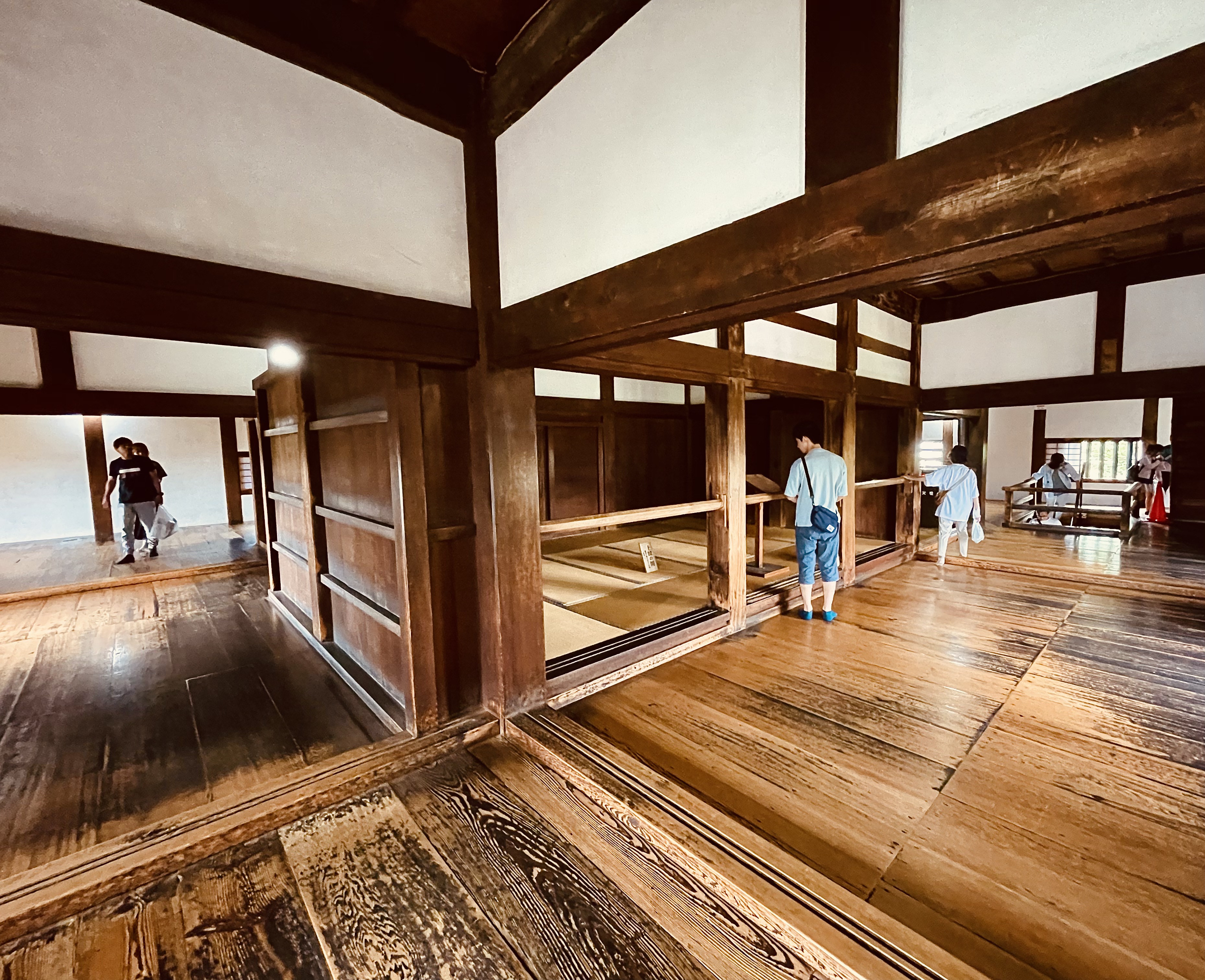 Grundsätzlich liegen den meisten dieser Burgen keinesfalls so gewaltig wie ästhetisch erscheinende Strukturen wie bei Himeji oder Matsumoto zugrunde. Traditionell waren dies mehretagig um einen Turm gegliederte, funktionale Holzbauten über mächtigen Steinsockeln auf solidem, geebnetem Felsgrund, wie es an einem alten Modell in der erhaltenen Burganlage von Inuyama verdeutlicht wird. Ganz oben gab es üblicherweise ein privates Gemach zur Erholung und Entspannung für den Kriegsherrn und seine Gemahlin sowie Konkubinen, während untere Etagen von gerüsteten männlichen Kriegern bis zum Ende ihrer jeweiligen Schlachten bevölkert wurden. Äußerlich umringt von Wällen und (Wasser-) Gräben gruppierten sich außerdem noch Verwaltungs- und Ruheräume, Waffenschmieden und Speichergebäude um die eigentliche Kriegsburg herum – all dies war militärischen Zwecken unterworfen. Fragen Sie mal zu Frischwasserversorgung oder Abtransport von Fäkalien zur Belagerungszeit und trauen Sie besser nicht ihren Augen, wenn in verschiedenen Filmsequenzen seidengewandete Schönheiten über jene Etagen schweben.