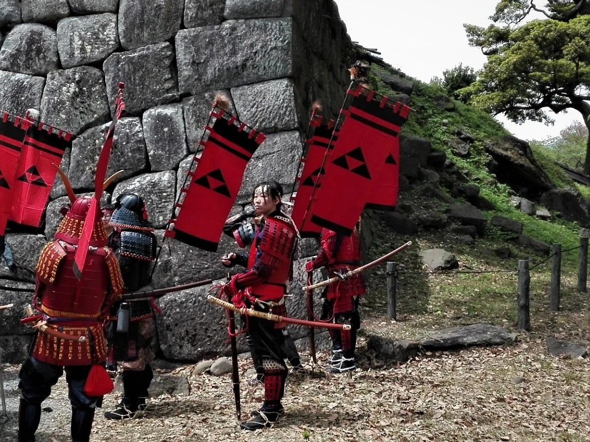 Die Provinzen auf Honshu waren überzogen mit hunderten, ja tausenden von Kriegsburgen herrschender Provinzgouverneure (大名, Daimyō), sozusagen Warlords im Japan der „streitenden Reiche“ (戦国時代 sengoku-jidai), vor der Zeit der drei Reichseiniger (Oda Nobunaga, Toyotomi Hideyoshi, Tokugawa Ieyasu , 16-17. Jhd), der sich die relativ friedliche Periode unter Shogun Tokugawa Ieyasu und seinen Nachfolgern anschloss, in welcher viele dieser Kriegsburgen nutzlos und geschleift wurden. Ein Edikt aus dieser Zeit (1615) bestimmte, dass jedem Daimyō in seinem Herrschaftsgebiet lediglich der Besitz einer einzigen Burg gestattet sei – neben der Verfügung, dass ein Teil seiner Familie in der Machtzentrale des Shogun, in Edo, zu leben und er wenigstens einmal jährlich dort zum Rapport zu erscheinen habe. Die Bedeutung ihrer Samurai als entscheidende Krieger schwand mit den zuerst durch die Portugiesen im 16. Jahrhundert in Japan eingeführten und schnell verbreiteten Feuerwaffen – höchst eindrucksvoll in Szene gesetzt in Kurosawas Film Kagemusha, endend mit dem Untergang des Hauses Takeda. Das Verbot des öffentlichen Tragens von Schwertern und die blutige Niederschlagung des letzten großen Aufstandes gegen die Meiji-Restauration (Satsuma-Rebellion) besiegelten 1876/77 das Ende des Zeitalters der Samurai.