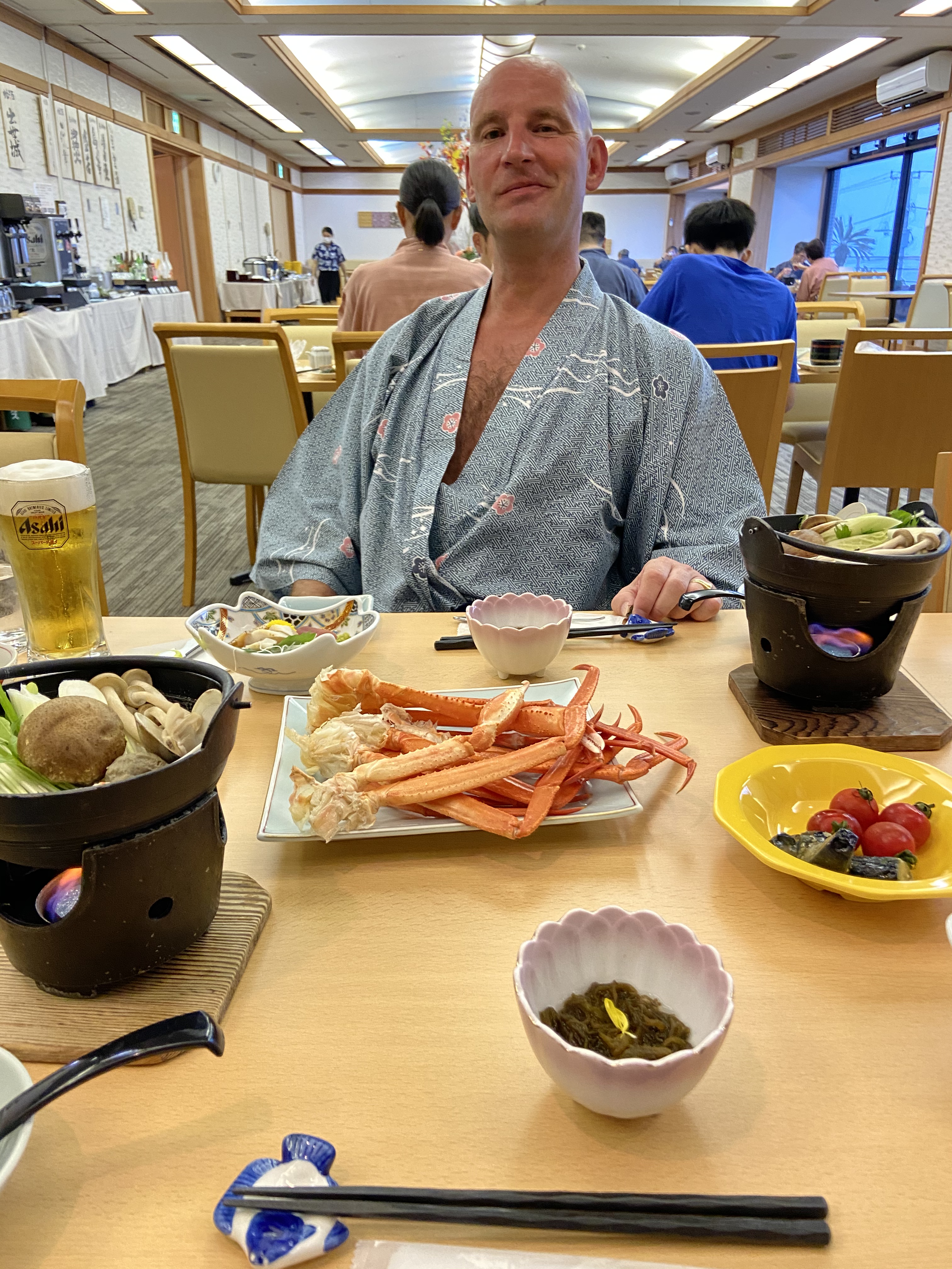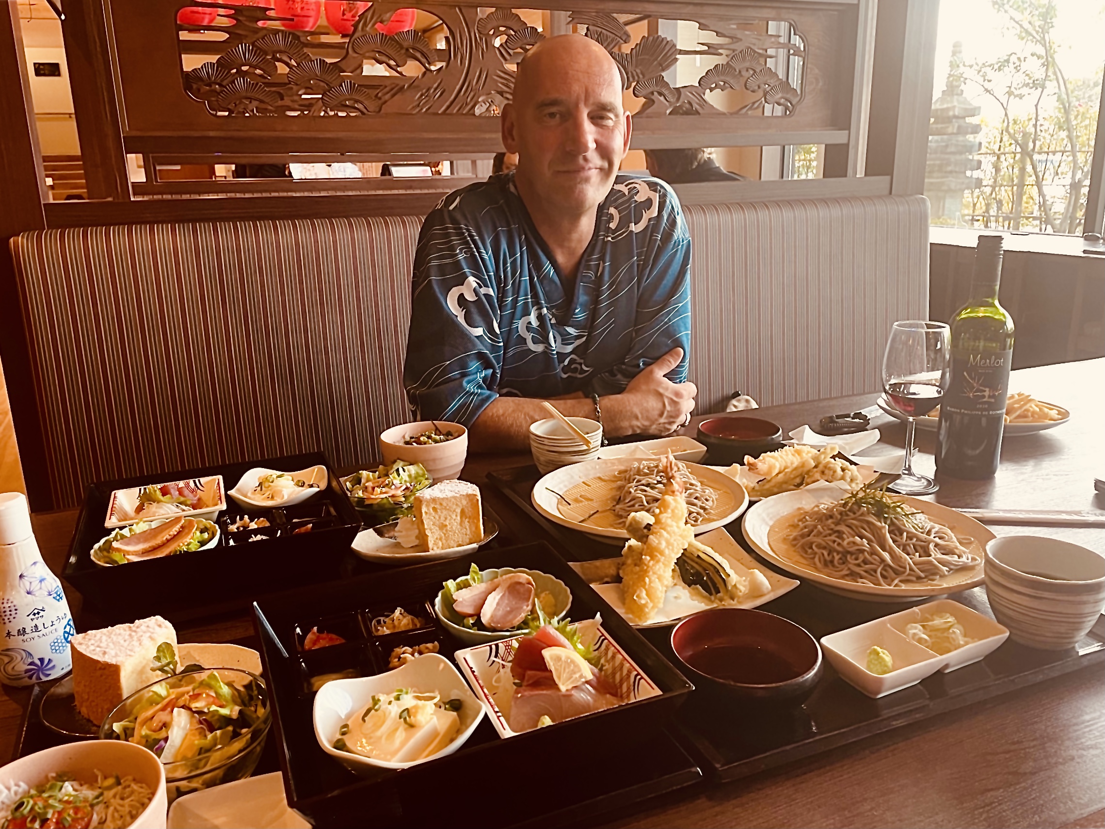 Göttlich zu tafeln wird in JP durch alle Bevölkerungsschichten hindurch mit Vorliebe praktiziert, denn Essen ist hierzulande nicht einfach Nahrungs- oder Energiezufuhr, sondern wird manchmal wie ein Kult zelebriert. Auch wir als gemischtes Ehepaar genießen gerne zu Neujahr, in bequeme Yokata gekleidet, stundenlang köstliche Riesenkrabben, pazifische Austern, Wagyu-Filet oder Sashimi edler Fische mit köstlichem Reis, umringt von Dutzenden Schälchen allerlei Delikatessen aus Flora und Fauna, sowie begleitet von Bechern mit Goldblättchen bereichertem Sake (wird nur zum Jahreswechsel angeboten). Der in JP gängige Ausspruch Lieber Fresslust als Wollust (色気より食い気 – Iroke yori kuike) verweist auf volkstümliche Schlemmerlust, wobei Gefräßigkeit oder durch unmäßiges Essen erworbene Leiden hier im Gegensatz zu Deutschland kaum zu beobachten sind.