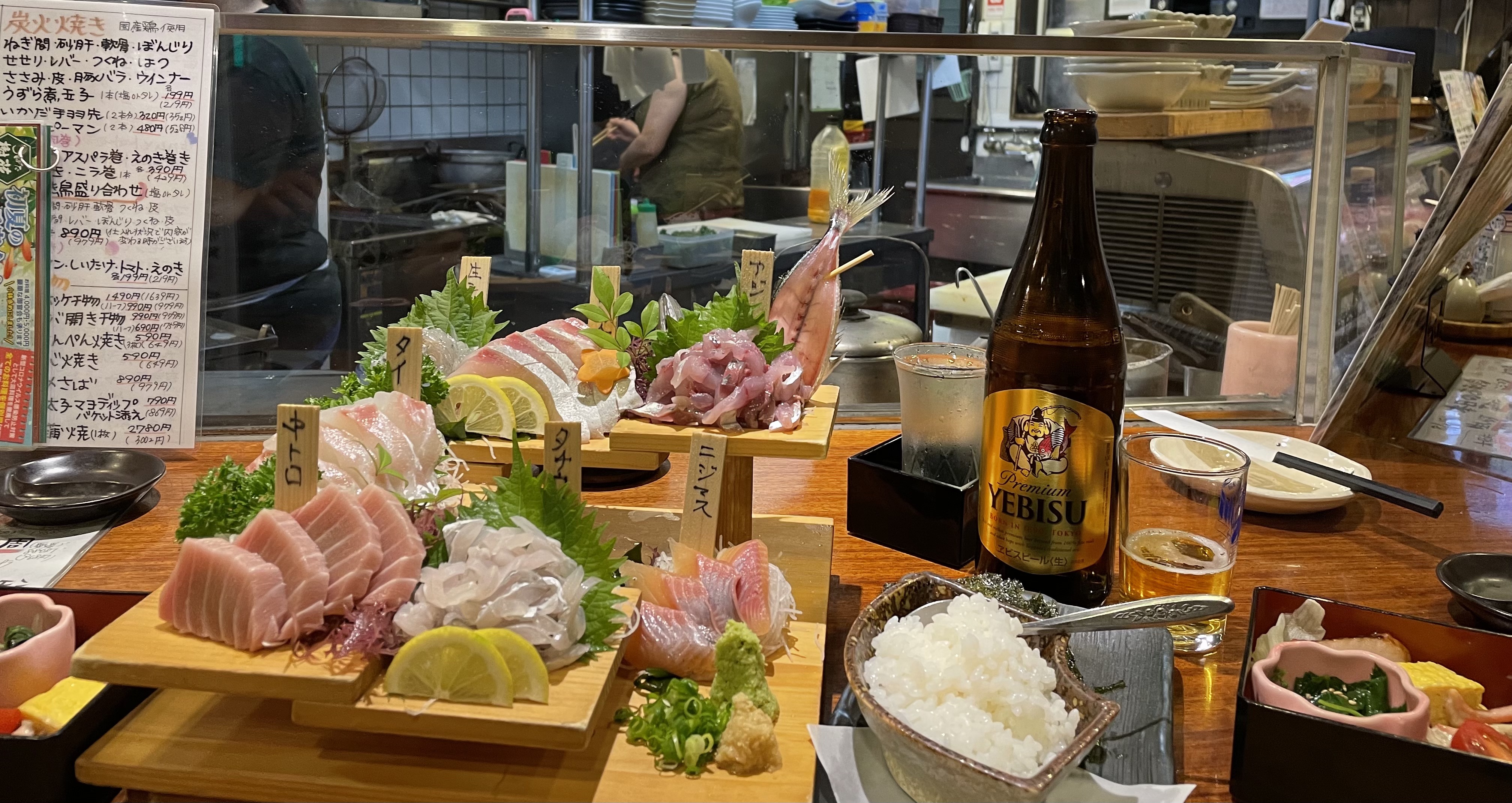 Wer in Japan vegetarisch oder gar vegan essen mag, wie es in DE verbreitet Mode wird, bestraft sich nur selbst im Lichte der so ausgewogen vielfältigen wie nahrhaften und leckeren Speisenangebote. Exaltierte buddhistische Tempelküche beispielsweise soll zwar ganz ohne tierische Komponenten auskommen, doch üblicherweise bilden Saucen, Pasten und Gewürze aus Fisch sowie viele andere tierische Zutaten die geschmackliche Grundlage der meisten Mahlzeiten. Katsuobushi (鰹節) beispielsweise – Bonitoflocken, geraspelt von nahezu steinhart getrocknetem, geräuchertem Bonito (eine Thunfischart), deren Herstellung je nach Veredelungsstufe bis zu 2 Jahre dauert – bilden die Basis vieler Suppen und geschmackliche Zutat leckerer Speisen.